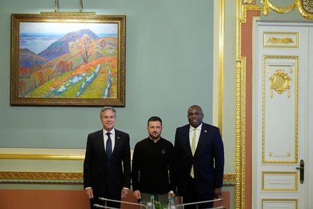 KYIV (Reuters) -The U.S. and British foreign ministers met President Volodymyr Zelenskiy on Wednesday on a visit interrupted by air raid warnings, unveiling new support but no breakthrough on the long-range strikes into Russia desperately sought by Ukraine.