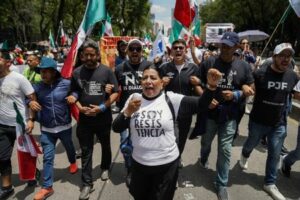 A woman uses a bullhorn, as demonstrators protest on Paseo de la Reforma Avenue after a highly contested judicial reform proposal was passed in the Senate in Mexico City, Mexico September 11, 2024. REUTERS/Toya Sarno Jordan