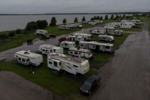 Vista de un parque de caravanas a orillas del lago Palourde mientras la tormenta tropical Francine se intensifica y va camino de convertirse en huracán antes de su previsible llegada a la costa estadounidense del Golfo de México, en Morgan City, Luisiana, Estados Unidos. 10 de septiembre de 2024. REUTERS/Marco Bello
