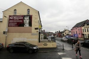 FOTO DE ARCHIVO: Un hombre pasa junto a un mural dedicado al abogado asesinado Pat Finucane en Fall’s Road, al oeste de Belfast. 12 de diciembre de 2012. REUTERS/Cathal McNaughton (IRLANDA DEL NORTE – Etiquetas: MILITAR CRIMEN LEY POLĂTICA) – LM1E8CC15B201