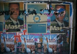 FILE PHOTO: Campaign posters of Argentine presidential candidate Sergio Massa are displayed on a board during Argentina’s runoff presidential election, in Buenos Aires, Argentina November 19, 2023. REUTERS/Agustin Marcarian/File Photo