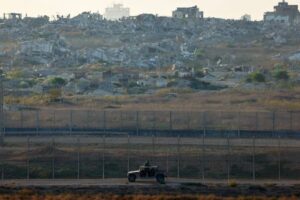 A military jeep patrols the Israeli side of the Israel-Gaza border, amid the Israel-Hamas conflict, in Israel, September 11, 2024. REUTERS/Amir Cohen