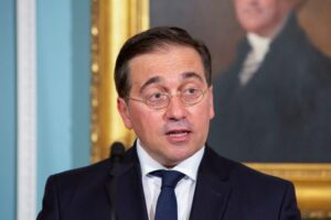FILE PHOTO: Spanish Foreign Minister Jose Manuel Albares makes a statement during a press conference at the State Department in Washington, U.S., May 10, 2024. REUTERS/Kaylee Greenlee Beal/File Photo