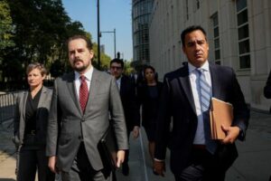 Assistant U.S. Attorney Francisco Navarro and other members of the prosecution team exit following a plea hearing for accused Mexican kingpin Ismael “El Mayo” Zambada, the Brooklyn Federal Courthouse in Brooklyn, New York, U.S., September 13, 2024. REUTERS/Brendan McDermid