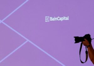 FILE PHOTO: The logo of Bain Capital is displayed on the screen during a news conference in Tokyo, Japan October 5, 2017. REUTERS/Kim Kyung-Hoon/File Photo
