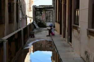 A woman sits outside her home after water was delivered during water shortages, in Havana, Cuba September 11, 2024. REUTERS/Norlys Perez