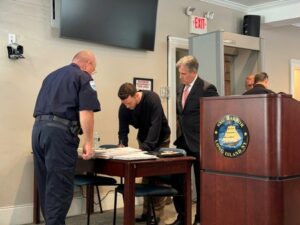 Singer Justin Timberlake appears with his lawyer Edward Burke at a hearing related to a DWI arrest in the Sag Harbor Village Court in Sag Harbor, New York, U.S., September 13, 2024. T E McMorrow/Pool via REUTERS