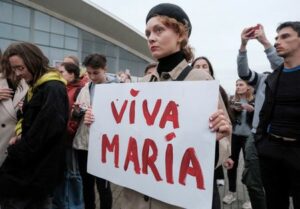 FILE PHOTO: An activist attends a rally in support of detained Belarusian opposition leader Maria Kalesnikava in Minsk, Belarus September 8, 2020. BelaPAN/Handout via REUTERS /File Photo