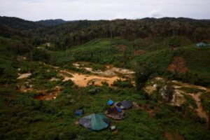 A Yanomami indigenous village is seen near a deactivated illegal mining site, in Yanomami indigenous land, Roraima state, Brazil, August 28 2024. REUTERS/Amanda Perobelli