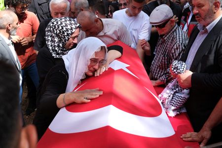 Didim, Aydin, TURKEY (Reuters) – Hundreds of people waving Turkish and Palestinian flags gathered for the funeral on Saturday for Aysenur Ezgi Eygi, a Turkish-American activist killed in the Israeli-occupied West Bank.