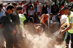 Mehmet Suat Eygi, father of Aysenur Ezgi Eygi, a Turkish-American activist killed in the Israeli-occupied West Bank, sits next to his daughter’s grave during Aysenur Ezgi’s funeral in Didim, in the western Aydin province, Turkey, September 14, 2024. REUTERS/Dilara Senkaya