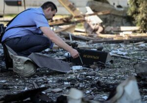 FILE PHOTO: A war crimes prosecutor works at a site of a Russian drone attack, amid Russia’s attack on Ukraine, on the outskirts of Lviv, Ukraine June 19, 2024. REUTERS/Roman Baluk/File Photo