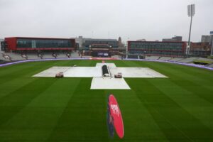 Cricket – Second T20 International – England v Australia – Old Trafford Cricket Ground, Manchester, Britain – September 15, 2024 General view of covers on the pitch during a rain delay Action Images via Reuters/Lee Smith