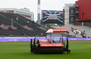 Cricket – Second T20 International – England v Australia – Old Trafford Cricket Ground, Manchester, Britain – September 15, 2024 General view of the big screen as the match is abandoned due to bad weather Action Images via Reuters/Lee Smith