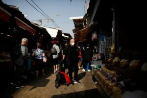 A man wearing a mask shops at a food market September 15, 2024 September 15, 2024 FILE PHOTO: A man wearing a mask shops at a food market in Tel Aviv, Israel March 15, 2020. REUTERS/Corinna Kern/File Photo