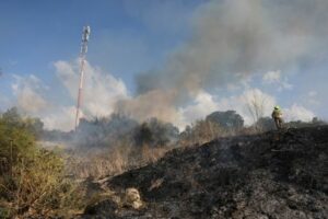 Humo se levanta tras un ataque con misiles desde Yemen en el centro de Israel. 15 de septiembre de 2024. REUTERS/Ronen Zvulun