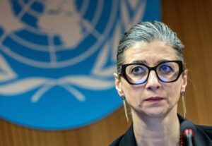 FOTO DE ARCHIVO. Francesca Albanese, relatora especial de la ONU sobre los derechos humanos en los territorios palestinos, asiste a un evento paralelo durante el Consejo de Derechos Humanos en las Naciones Unidas en Ginebra, Suiza. 26 de marzo de 2024. REUTERS/Denis Balibouse