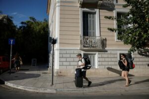 Los turistas llevan su equipaje en el barrio de Koukaki, en Atenas, Grecia, el 11 de septiembre de 2024. REUTERS/Louiza Vradi