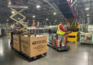 Employees work at the United States Postal Service (USPS) facility in Los Angeles, California, U.S. November 30, 2023. REUTERS/Jorge Garcia/File Photo