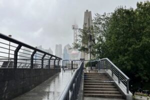 Police cordons are seen at a closed entrance to the Bund after Typhoon Bebinca made landfall in Shanghai, China September 16, 2024. REUTERS/Xihao Jiang