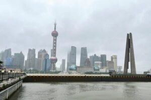 A view from the Bund shows rising river levels after Typhoon Bebinca made landfall in Shanghai, China September 16, 2024. REUTERS/Xihao Jiang