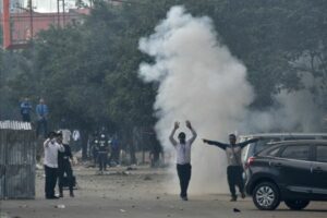 Demonstrators react as smoke billows from a tear gas shell fired by police to disperse the protesters during a protest march to demand an end to the latest spurt of ethnic violence, in Imphal, Manipur, India, September 10, 2024. REUTERS/Stringer/ File Photo