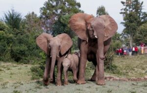 A family of elephants from the Mwea National Reserve walk together during a translocation exercise at the Aberdare National Park, in Mweiga, Nyeri County, Kenya October 14, 2024. REUTERS/Thomas Mukoya