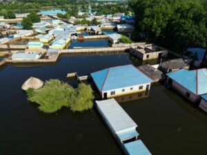 A drone view shows flooded houses in the Danayre district of Yagoua, Cameroon September 22, 2024. REUTERS/Desire Danga Essigue