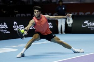 FOTO ARCHIVO: Tenis – 6 Kings Slam – Riad, Arabia Saudí – 19 de octubre de 2024. El español Carlos Alcaraz en acción durante la final contra el italiano Jannik Sinner. REUTERS/Hamad I Mohammed/File Photo