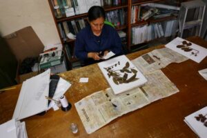 An employee of the Alexander von Humboldt Biological Resources Research Institute, works on the conservation of the plant collection of the institute’s herbarium, in Villa de Leyva, Colombia, October 11, 2024. REUTERS/Luisa Gonzalez
