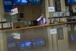 FOTO DE ARCHIVO: Un operador habla por teléfono en la Bolsa de Madrid. 6 de agosto de 2012. REUTERS/Susana Vera