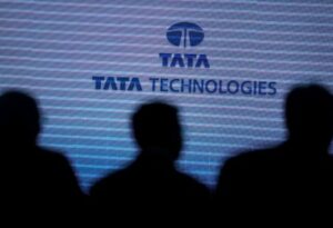 FILE PHOTO: People are pictured of the Tata Technologies logo during a press conference in Mumbai, India, October 8, 2024. REUTERS/Francis Mascarenhas/File Photo
