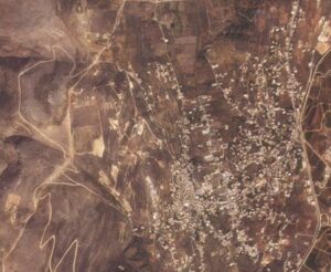Una imagen de satélite muestra Kfarkela antes de la destrucción,
