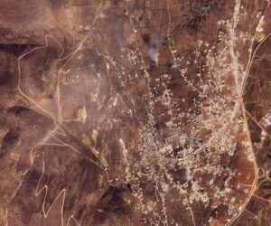 Una imagen de satélite muestra Kfarkela después de la destrucción,