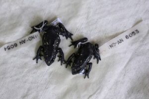 Las ranas Atelopus marinkellei capturadas durante las expediciones del Instituto de Investigación de Recursos Biológicos Alexander von Humboldt se ven en Villa de Leyva, Colombia, 11 de octubre, 2024. REUTERS/Luisa González
