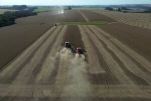 FOTO DE ARCHIVO: Trabajadores rurales operan cosechadoras durante una temporada récord de cosecha de soja en el estado más meridional de Brasil en una granja en Nao Me Toque, estado de Rio Grande do Sul, Brasil, 3 de abril de 2024. REUTERS/Diego Vara/Foto de archivo
