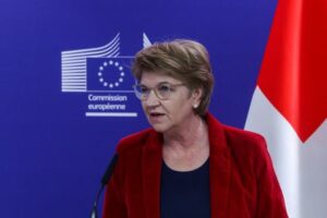 Swiss Confederation President Viola Amherd looks on as she meets with European Commission President Ursula von der Leyen in Brussels, Belgium March 18, 2024. REUTERS/Yves Herman/File Photo