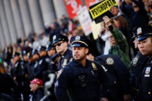 Security members forces stand guard on the day of a rally for Republican presidential nominee and former U.S. President Donald Trump, in New York, U.S., October 27, 2024. REUTERS/Eduardo Munoz