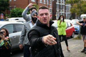 Anti-immigration activist Stephen Yaxley-Lennon, known as Tommy Robinson arrives at