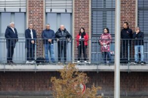 Daniela Cavallo, Chairwoman of the General and Group Works Council of Volkswagen AG, speaks to employees announcing job cuts and closure of a few Volkswagen factories, at the company’s headquarters in Wolfsburg, Germany, October 28, 2024. REUTERS/Axel Schmidt
