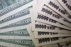 FILE PHOTO: Japanese 10,000 yen notes are spread out next to U.S. 100 dollar bills at Interbank Inc. money exchange in Tokyo, in this September 9, 2010 picture illustration. REUTERS/Yuriko Nakao/File Photo