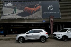 A poster for an MG-4 EV, a brand of Chinese state-owned carmaker SAIC, is displayed at a car showroom in Santander, Spain, June 13, 2024. REUTERS/Vincent West/File Photo