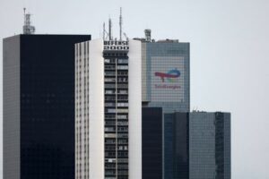FILE PHOTO: The TotalEnergies logo sits on the company’s headquarters skyscraper in the La Defense business district near Paris, France, June 26, 2023. REUTERS/Stephanie Lecocq/File Photo