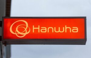 FILE PHOTO: The logo of Hanwha is seen in Davos, Switzerland, May 22, 2022. Picture taken May 22, 2022. REUTERS/Arnd Wiegmann/File Photo
