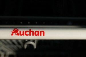 The logo of Auchan supermarket is pictured in Aix-en-Provence