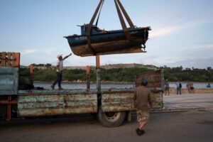 Pescadores reubican sus embarcaciones antes de la llegada de la tormenta tropical Rafael en La Habana, Cuba, 5 de noviembre de 2024. REUTERS/Alexandre Meneghini