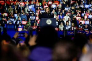 Democratic presidential nominee U.S. Vice President Kamala speaks during a campaign rally, in Philadelphia, Pennsylvania, U.S., November 4, 2024. REUTERS/Rachel Wisniewski/File Photo