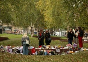 FILE PHOTO: People look at flowers and tributes which are placed in memory of former One Direction singer Liam Payne, who was found dead after he fell from a third-floor hotel room balcony in Buenos Aires, in Manchester, Britain, October 21, 2024. REUTERS/Phil Noble/File Photo