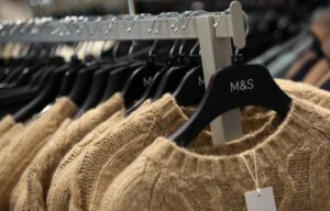 FILE PHOTO: Winter jumpers are displayed on a rail at the M&S store inside the Trafford Centre in Manchester, Britain, December 14, 2023. REUTERS/Phil Noble/File Photo