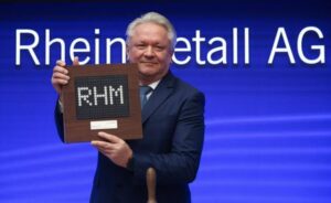 FILE PHOTO: Armin Papperger, CEO of German defense and automotive group Rheinmetall AG poses for the media as the defense contractor joins Germany’s DAX blue-chip index in Frankfurt, Germany, March 20, 2023. REUTERS/Alex Kraus/File Photo